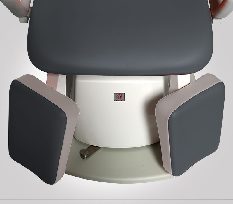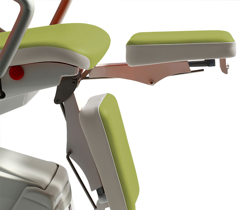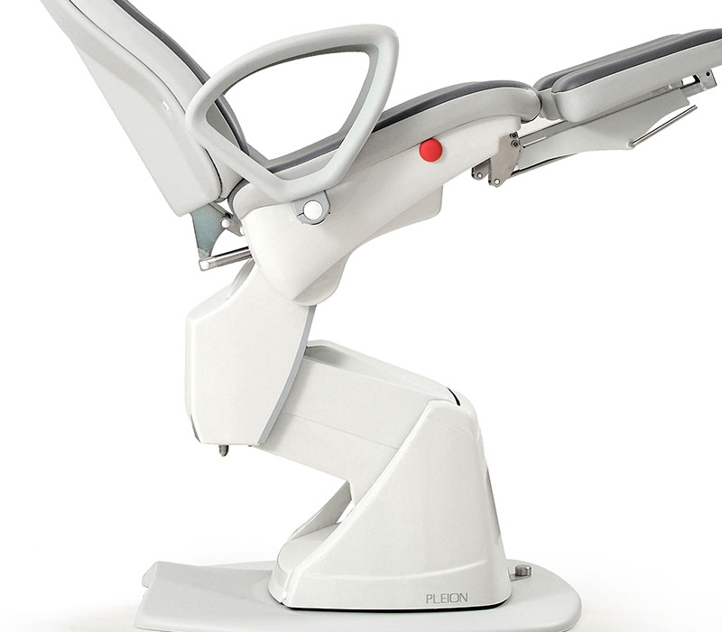 Deze Pleion S behandelstoel is standaard uitgerust met 2 motoren die de stoel in optimale positie brengen. De kanteling van de zitting wordt elektrisch én onafhankelijk bediend. Resultaat: de cliënt blijft in zithouding terwijl de voeten op de juiste hoogte worden gebracht. De rugleuning kan – indien gewenst – via een gasveer ingesteld worden. Voorzien van wegklapbare armleuningen.